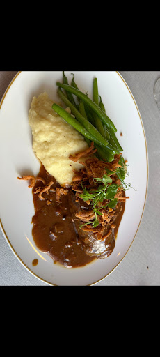 Read moreDas Menü kostete 48,50 Euro pro Person ohne Getränke und war geschmacklich vollkommen in Ordnung, ohne jetzt herausragend zu sein. Die Menge jedoch war so überschaubar, dass sogar meine Frau danach noch Hunger hatte. Die Vorspeise bestand aus 3(!) kleinen Scheiben Kalbstafelspitz, dazu ein großer Esslöffel Linsensalat mit einem Teelöffel cremiger Soße.