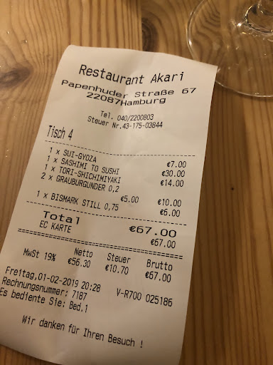 Read moreActually, to me as non-Japanese person with 1 year experience in Japan, I found the food very authentic. As of today I could not find a more authentic Japanese food in Hamburg. The portion (be it small to some) is also what I used to in Japan, but the service is unfortunately not (good). When the restaurant is full, the service is very slow, the dishes were brought almost one by one and the worse thing is that 1 dish has been forgotten to be served while on the receipt. This has never happened to me not only in Japan, but in any other restaurant either I've been in. If this would be the first time happening, okay, but I do remember the time before when I tried to book 2 seats and nobody picked up the phone that day in the opening hours. I've tried several times. No call-back either. So I went there without a reservation and I got 2 seats. Weird... This is also something, that would have never happened to me in Japan either. Therefore, even though I liked the food, the service is often very 'non-Japanese' to me. :( Feeling...