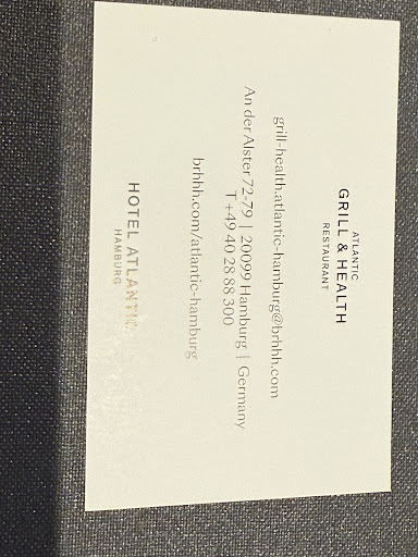 Read moreA FOODIE GEM IN THE HEART OF HAMBURG WITHIN THE HOTEL ATLANTIC!!!!!Cees, our server know's his customer service and led us on a excellent foodie tour of the multi faceted menu at Grill & Health (don't let the ODD name of the restaurant scare you away LOL). It is cozy, charming and has something for everyone with both local specialties as well as international favorites. The sommelier from neighboring 1 star Michelin "Atlantic Restaurant" steered us to an excellent Rheingau Riesling that we all thoroughly enjoyed with our entrees that ranged from Wiener Schnitzel to Seeteufel fish to a Superfoods Salad and Steak. The Dinkel Pfifferling Risotto is a not to miss item and you will be amazed at how great the cucumber sorbet tastes as a palette cleanser, I certainly was as I loved it!!! Cees was attentive to our every need and recommended a local Sasse cocoa hazelnut schnapps that was the perfect ending to our amazing meal. Will certainly be back when we...
