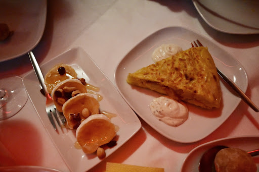 Das Gute zuerst: authentisches spanisches Restaurant mit z. T. sehr leckeren Speisen. So weit, so gut. Wir waren 9 Personen inkl. 2 Vegetarier. Die weibliche Bedingung hat uns gleich zu Beginn sehr bestimmt darauf hingewiesen nicht einzeln zu bestellen da dies die Küche überfordert. Sie bot uns ein Potpourri aus Tapas mit Nachspeise für 10 (?) Personen für knapp 400€ (!!!) an. Nachfragen beantwortete sie unwillig und schroff. Wir einigten uns auf vegetarische für 2 und reguläre Tapas für 6 Personen, "das reicht gut für alle" versicherte sie uns. Wir bestellten noch Rotwein für 4 Herren und 1l Sangria für 5 Damen. Die Bedienung weigerte sich allerdings vehement die Sangria auf 5 Gläser aufteilen, da die Früchte nur für 4 Personen bemessen sind (Anweisung vom Chef) und es keinen größeren Krug gäbe. Beim Rotwein waren sich 4 erfahrene Weintrinker schnell einig: der Wein moussiert und schmeckt leicht säuerlich. Wir reklamierten und die Bedienung rief den "Sommelier", der wohl auch Chef der Hauses ist. Ein älterer, resoluter Spanier kam an unseren Tisch, war über unsere Meinung zum Wein erbost, wurde schnell laut, ja beleidigend und ließ keine Reklamation an seinen Weinen zu, er weigerte sich sogar den Wein zu probieren. Eine Schimpftriade diesen Ausmaßes habe ich in einem Lokal noch nicht erlebt. Wir einigten uns schließlich darauf, dass uns der Wein, den er uns eh nicht empfohlenen hätte, nicht schmecke. Wir bestellten einen anderen Wein, der dann auch OK war. Die beiden Vegetarier bekamen recht schnell je einen lieblos zusammen gestellten Vegieteller und schauten uns den Rest des Abends beim Essen zu, unsere Tapas kamen gemäß spanischer Tradition nach und nach. Die Tapas waren wirklich gut, aber leider für 6 Personen genau abgezählt (6 Schrimps, 6 Kartoffeln, 6 kleine Stangen grüner Spargel...). Wir bestellten für den 7ten Nichtvegitarier nach, was zu weiterem Unmut führte aber letztlich klappe. Die Stimmung war inzwischen auf dem Tiefpunkt, die Luft im voll und eng besetzten Lokal stickig...