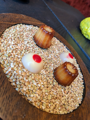 Brot zum Einstieg wurde uns einfach hingestellt, ohne Bestellung unsererseits und im Nachhinein berechnet. Von solchen gehobeneren Lokalitäten bin ich anderes gewohnt. Brot war immerhin sehr lecker. Alkoholfreie Getränkekarte gab es leider nicht. Allerdings gibt es alkoholfreie Getränke, über die wir aber nur auf Nachfrage informiert wurden. Auf meinen Saft musste ich dann erst mal lange warten. Der kam dann nach erneuter Nachfrage. Der Pfirsichsaft ist aber super lecker und sehr zu empfehlen! Grundsätzlich wäre es auch schön, Wasser angeboten zu bekommen, ohne aktiv danach fragen zu müssen (aber ist jetzt auch nicht tragisch). Bei den Antipasti wäre wünschenswert, wenn die Preise dem jeweiligen Gericht mehr entsprechen. Z.B. gehe ich davon aus, dass hochwertiges Fleisch/Garnelen tendenziell teurer sind, bzw. die Portionen etwas kleiner, dafür aber Risotto oder ähnliches etwas größer/günstiger oder eben raffiniert hergerichtet. Das Risotto war jedenfalls recht klein gehalten im Vergleich zum Tatar. Vom Hocker gerissen hat beides nicht direkt. Wir hatten das Tatar bewusst doppelt bestellt. Daraufhin wurde mehrmals nachgefragt, ob das so richtig sei. Einmal sicherheitshalber zu fragen, kann Sinn machen - aber drei mal war dann doch zu viel, wir hatten uns dabei schon etwas gedacht. Bei einem Antipasto kam ein anderes Gericht, als bestellt. Allerdings ist positiv hervorzuheben, dass der Ersatz schnell kam. Auf den Hauptgang mussten wir recht lang warten, obwohl das Restaurant fast leer war. Der Hauptgang meiner Begleitung war üppig von der Größe, ließ dafür allerdings von der Raffinesse und durch Mangel an Begleitung zu den (leckeren) Nudeln zu wünschen übrig. Mit meinem Hauptgang (Lachs, Kartoffelpüree) war ich sehr glücklich. Lecker knusprig, gut gewürzt, ... Die Nachspeise kam fix und war sehr lecker. Besonders empfehlen kann ich die Zitronennachspeise. Toll und kreativ präsentiert und schmackhaft, aber auch das Mangosorbet ist gut.