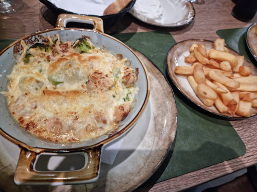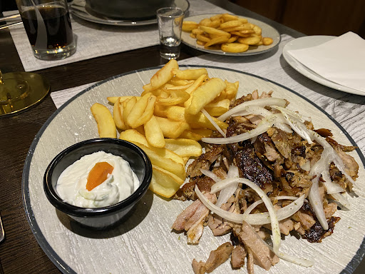 Read moreLeider waren wir nicht zufrieden. Positiv fanden wir das Ambiente.Wir haben ja schon seit ein paar Jahren unseren Stamm Griechen, aber dachten, wir versuchen mal etwas neues. Was uns am Anfang nicht gefiel war, dass wir uns in einem leeren Restaurant (wir waren die einzigen Gäste) an einen Wandtisch setzen sollten, obwohl wir gerne am Fenster gesessen hätten. Meine Frau hatte sich Garnelen bestellt und bekam ganze drei Stück. Die dazu gehörige Folienkartoffel hatte die Größe einer ganz normalen Kartoffel. Mein Teller mit Gyros, Fleischspieß und Pommes - Die Pommes waren wirklich lecker, der Fleischspieß war auch ok aber das Gyros war klein geschrettertes Fleisch welches als Gyros nicht wirklich zu erkennen war. Auch geschmacklich war dies nicht besonders. Da drei Kellner/in hinterm Tresen mit ihren Handys spielten, hatten wir keine Change nach der Rechnung zu fragen. Ich fand das ganze sehr unaufmerksam. Stamm Grieche bleibt natürlich...