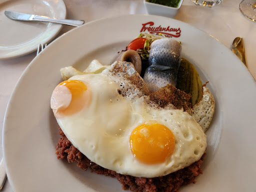 Freudenhaus is on a side street, a short block off of the main Reeperbahn Rd. So, very easy to get to. If you're looking for authentic German food with vegetarian options, this is a great...