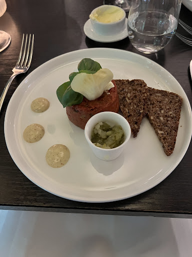 The beef tatar had a slight kick that was very satisfying when eating, although it was served with a quail egg that I thought was very overcooked and some pieces of salad and cream that felt a bit wrong. The beetroot tatar with goat cheese was excellent due to its pairing of sweet and sour so it would be the starter id recommend to a friend.