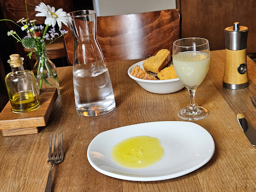 Besonderer Platz für besondere Anlässe. Der Geburtstag meiner lieben Frau war genau der richtige Anlass, um Mal wieder die französische Küche zu kosten. Beim dem Betreten der Räumlichkeiten waren wir zunächst überrascht, wie klein und gemütlich das Restaurant war, zum Glück saßen die meisten Gäste draußen und die sehr freundliche Kellnerin war auch damit einverstanden, dass wir einen Vierertisch wählten. Ist nicht überall so. Alleine schon dafür sollte ich 10 Sterne vergeben und der Kellnerin einen dicken Blumenstrauß schenken. Die Menükarte ist sehr überschaubar aber dennoch interessant. Es überwiegen doch Gerichte mit Fisch und Meeresfrüchten, für Fleischliebhaber gibt es auch einige Leckereien. Die Weinauswahl ist natürlich, wie es sich für ein französisches Restaurant gehört, rieeesig. Nun zu den bestellen Gerichten: Meine Frau hat eine kleine Portion Tatar bestellt, bei war es eine kleine Portion "Ceviche vom Bachsaibling", eine Art eingelegter Fisch mit Gemüse. Was wir dann erlebten, war höchster Genuss! Und die Portionen waren echt groß! Obwohl wir Beides in "Klein" bestellten! Nach dem Verzehr waren wir eigentlich gut satt, wollten aber noch was Neues probieren und hatten und für das Maishuhn mit Zwiebelpüree entschieden. Obwohl ich kein Gefügel-Gourmet bin, hat mich die Speise dennoch überzeugt, vor allem das Zwiebelpüree und die Albufera Sauce waren der Hammer. Das Zwiebelpüree wurde meines Erachtens mit Wein gelöscht und war leicht angebraten. Genau das Richtige für mich! Die Idee auf diese Weise auch Mal Zwiebeln zu essen fanden wir sehr interessant und versuchen es auch Mal zu Hause. Insgesamt war unser Abendessen sehr gelungen, die Bedienung super (der Chef half auch mal mit) und das Essen auch einem sehr hohen Niveau. Wir werden definitiv auch Mal ohne besonderen Anlass...