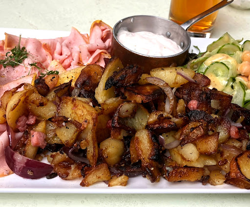 I ordered the Wild schnitzel made of deer and it was amazing. The fried potatoes were well seasoned and delicious and the salat that accompanied it was fresh and great mix that went perfectly with the tasty wild schnitzel.