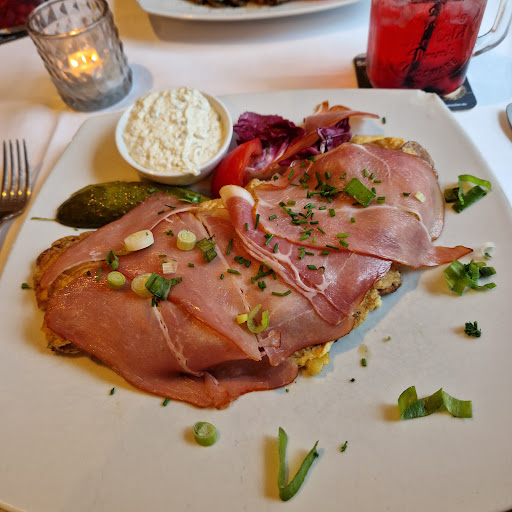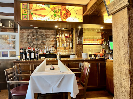 Read moreSind nach ca. 70 Km Fahrradtour dort gelandet und haben uns über die Auszeit an diesem geschichtsträchtigen Ort gefreut. Schön draußen auf der Terrasse zwischen uralten Gebäuden und der Kreuzkirche sitzen und etwas essen und trinken, herrlich. Die Getränke kamen auch schnell und die "Speisekarten" auch, was allerdings zerknitterte DIN A4 Zettel mit Flecken drauf waren. Bei näherem Betrachten ist uns dann aufgefallen, dass eigentlich alles etwas schäbig und runtergekommen ist, vom Mobiliar auf der Terrasse bis hin zu der WC Ausstattung. Alles irgendwie beschädigt und eigentlich nicht angemessen für diesen tollen Ort. Was ausserdem sehr nervig war, waren die (wirklich sehr laut) rumschreienden Kinder hinter dem (faltigen) Sichtschutz zwischen der Terrasse und dem angrenzenden Wohnhaus, die dann von anderen Gästen zum leise sein aufgefordert wurden. Da hätte längst eine der Kellnerinnen einschreiten müssen, allerdings haben die sich nicht so oft auf der Terrasse blicken lassen, schade eigentlich. Die Preise waren auf jeden Fall ok und meine Spare Ribs mit Pommes sehr lecker, aber aus dem Laden könnte man eine Menge...