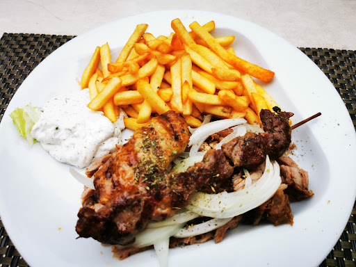 Read moreInsgesamt eine nette Location, aber für meinen Geschmack dann doch ein wenig zu kitschig. Ok, dass man auch hier die klassischen "Wir lernen griechisch" Servietten bekommt, ist ja obligatorisch, und dass durchweg griechische Liebeskummer-Gejaule aus den Boxen dröhnt, ist leider auch sehr verbreitet (Griechische Restaurants müssen "authentische" Musik laufen lassen, is klar). Das Essen macht das zum Glück größtenteils wett, wobei ich allerdings deutlich von der Bestellung der sogenannten "griechischen Bratkartoffeln" abraten muss. Ich glaube jedenfalls nicht, dass mutmaßlich im Konvektomaten erhitzte TK-Kartoffelscheiben ohne jeglichen Zusatz wie Öl, Kräuter oder Gewürze das Prädikat "nach griechischer Art" verdienen. Diese Bratkartoffeln haben jedenfalls keine Bratpfanne gesehen und der Fotogalerie nach zu urteilen war das auch kein Versehen, sondern Normalzustand hier. Der Reis ist deutlich besser und auch die Fleischgerichte sind gut gelungen. Die Salatbeilage ist aber leider auch hier die gewöhnliche Standardzusammensetzung (Viel Blattsalat, etwas Krautsalat, eine Tomate und eine Peperoni). Dafür ist aber der Service äußerst zuvorkommend, aufmerksam, freundlich und...