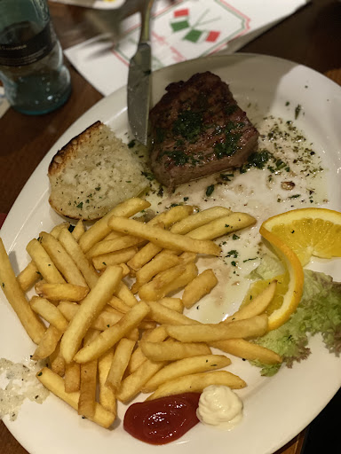 Die Zusammenstellung der Hauptspeisen bzw. der Beilagen ist auch eher zufällig. Fleischgerichte werden mit Pommes gereicht, was nicht zu den vermeintlich italienischen Speisen passt.