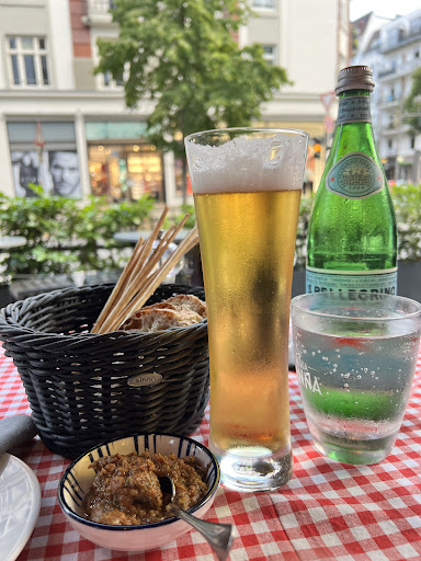Read moreIm Stadtteil Winterhude befindet sich dieses Restaurant, wo man bei warmen schönem Wetter draußen an kleinen Tischen mit rotweißen Tischdecken sitzen kann.