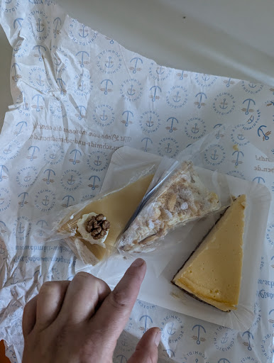 Ansonsten haben wir uns noch zwei Torten mitgenommen.. auch da war die Bedienung nicht auf zack, sondern sortierte lieber Papierservietten ein... am Tresen konnten man die Vielzahl von Torten sehr gut sehen allerdings waren die so dicht und eng gestellt, dass man ständig in gebückter Haltung fragen musste: "welche Sorte ist das?" - "Und die" - "Ohh Mokka?"... Ein Tipp: Schilder hinstellen und draufschreiben was man hat, dann kann man das reichhaltige Angebot auch überschauen und muss nicht ständig dumm nachfragen - Nebeneffekt: die Bedienung kann die Papierservietten in Ruhe ein sortieren und man kann erstmal lesen was man vielleicht haben möchte...