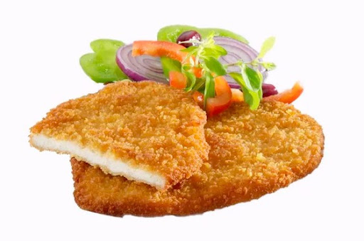 Dass das Schnitzel frisch gemacht ist bezweifel ich doch sehr. Siehe Bild 1, mein Schnitzel sah zu 99% aus wie dieses Beispielbild. Alles flach und schön industriell paniert und komplett gleich in der Panade und Höhe.