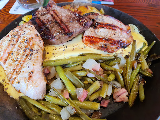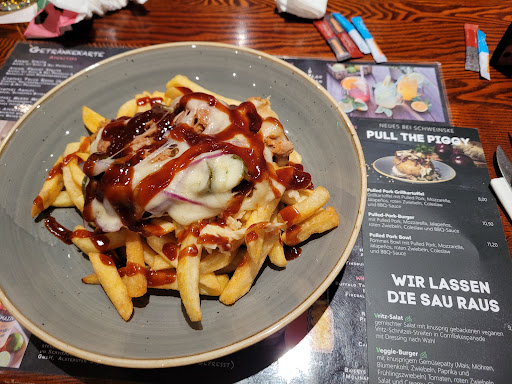 Read moreWir waren heute zum ersten Mal in dieser Filiale, haben uns ein leckeres, wenngleich spätes Mittagessen gegönnt. Der Zugang nach 2G+ wurde vor dem Betreten von einem sehr freundlichen Mitarbeiter geregelt, alles war sehr sauber und wir hatten ein sehr hohes Sicherheitsgefühl. Nach einiger Zeit der Grübelei entschieden wir uns für das aktuelle Angebot, eine Grillpfanne mit drei kleinen Steaks (Schwein, Rind und Pute), dazu Bratkartoffeln und Bohnen mit Speck. Nach vernünftiger Wartezeit (in etwa so lange, wie eine frische Zubereitung der bestellten Speisen dauern dürfte) bekamen wir je eine mittelgroße Eisenpfanne auf einem passenden Holzbrett, vorweg gab es noch hausgebackene Brötchen. Alles war sehr lecker, gut gebraten und richtig frisch, dazu herrlich dampfend heiß. So soll es sein! Zum Nachtisch gönnten wir uns dann noch zwei Espressi und einen Kaiserschmarrn mit Kirschen, der uns freundlicherweise ungefragt mit zweifachem Besteck serviert wurde. Sehr aufmerksam!