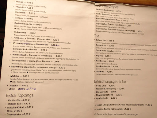 Read moreMost versatile Crepe choices in Hamburg; a venue where the guest can explore between sweet and hearty options of rich, velvety crepes filled to the brim with flavors such as matcha, creme brulee or curry to name a few. There are also seasonal creations or special editions like the Valentines Day Crepe. Though the venue gets packed on the weekends, there's a possibility to reserve the cosy back room with a japanese style heated table. The friendly owner Mimi makes you feel at home and you can watch her baking, decorating and carameling some of her creative creations with a torch. There's a stamping card system for the pancakes which is great for the frequent visitors....
