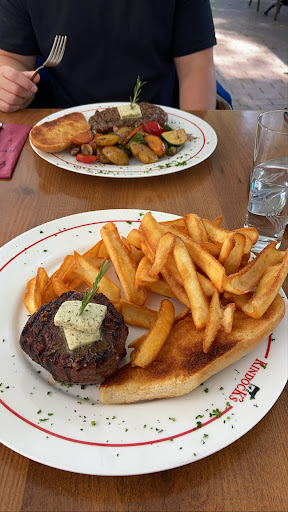 Read moreIch löse an einem Donnerstag Abend einen Gutschein für zwei Personen ein. Wir betreten das Restaurant und bekommen einen guten ersten Eindruck. Es sind schöne Bilder an der Wand und man geht auf ein Weinregal zu. Rechts abgebogen erkennen wir den Tresen. Es erfolgt ein freundlicher Empfang und wir geben unsere Reservierung bekannt. Der Tisch wird uns gezeigt und der Gutschein entgegen genommen. Wenig später erfolgt die Bestellung der Getränke und die Abfrage nach den gewünschten beilagen von einer weiteren Bedienung, die ebenfalls sehr sympathisch daherkommt. Die Getränke erreichen mit sehr kurzer Wartezeit den Tisch. Wenig später folgt die Vorspeise. Es ist eine gut gemachte Gulaschsuppe. Sehr löblich ist der gute Anteil vom Rindfleisch. Außerdem ist es sehr erfreulich, dass die Speisen wirklich heiß unseren Platz erreichen. Das macht doch Freude auf mehr. Der Hauptgang besteht aus einem klassischen Grillteller. Fachlich gut gemachtes Fleisch, von dem mich das Rindfleisch am meisten überzeugen kann. Das Geflügel war für meinen Geschmack etwas zu lange auf dem Grill und leicht trocken, aber immer noch gut zu genießen. Besonders positiv möchte ich die Beilagen hervorheben: Hier gibt es viele Steakhäuser, die keinen Wert drauf legen. Das Gemüse schmeckt hier super gut und ist toll gewürzt, die Bratkartoffeln kommen ebenfalls wunderbar und heiß auf den Tisch. Auch die Portion kann vollauf überzeugen. Wir verzichten beide auf eine Nachspeise. Insgesamt hat das Rindock`s hier sehr viel richtig gemacht. Die normalen Preise sind mit 15,90 € für den Grillteller und 4,90 € für die Gulaschsuppe...