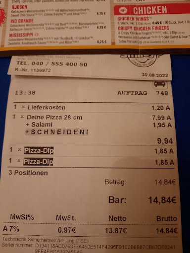 Nach dem ich die ganzen Rezensionen gelesen habe, ist es mir eigentlich schwer gefallen da was zu bestellen, jedoch habe ich es trotzdem gewagt. Resultat: hatte angegeben gehabt bitte nicht klingeln und würde gerne mit EC Karte bezahlen, die Pizza kommt an es wird geklingelt darauf hin möchte ich gerne bezahlen was passiert, der ec Karte Gerät spinnt die ganze Zeit, nach dem wir 20 min lang versucht haben das es funktioniert rief der Fahrer sein Manager an und er sagte zurück in die Filiale kommen neues Gerät abholen und wieder los fahren, darauf hin habe ich die Pizza dem Fahrer zurück gegeben, damit er mir ein neuen mit bringt was warm ist, schließlich kam er wieder, und es gab wieder Probleme! Darauf hin hieß es mein Konto sei nicht abgedeckt, was definitiv nicht stimmt denn habe 2 meiner Ec Karten probiert, darauf hin bin ich mit dem Fahrer gegen 23 Uhr zu einer Bank gefahren um zu zeigen das es garnichts mit der EC Karte zutun hat (der Fahrer konnte nichts dafür) als die Show zu Ende ging war na klar meine Pizza matschig und nicht mehr lecker! Aus dem Grund was der Manager heute abgeliefert hat war wirklich miserabel, weder eine Kulanz Entscheidung noch eine Entschuldigung oder sonstiges. APPEL AN DIE INHABER es ist ihr Geld nicht deren Geld, denn interessiert das Anscheind nicht ob es dem Laden gut geht, die haben ja keine Ausgaben, schauen sie sich ihre Rezensionen einmal an und sorgen Sie bitte das ihre Manager ihre Arbeit so machen, so wie sie es machen würden!!! Ich werde NIEWIEDER BEI EUCH BESTELLEN solange es keine Stellungnahme von...