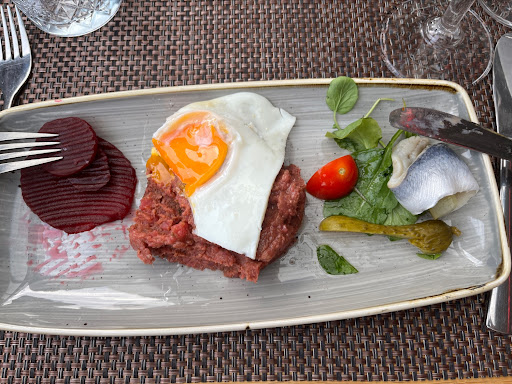 Beim Einlass wurden wir zunĂ€chst im Einfang stehengelassen, obwohl drei ServicekrĂ€fte uns gesehen haben. Erst als wir nach kurzer Zeit des Herumstehens proaktiv das Personal auf unsere Reservierung ansprachen, hatte man uns den Platz gezeigt. Dennoch, das Personal ist sehr freundlich und stets um guten Service bemĂŒht! Beim Essen ist allerdings noch viel Luft nach oben. Abgesehen von lĂ€ngeren Wartezeiten (was bei der AtmosphĂ€re allerdings nicht so tragisch ins Gewicht fĂ€llt), ist die Anrichteweise der Speisen sehr einfach und lediglich durch farbige Teller ein wenig ansprechend gestaltet. DarĂŒber hinaus etwas einfallslos. Geschmack ĂŒberzeugte nur teilweise, das Rindfleisch âChĂąteaubriandâ war von sehr guter QualitĂ€t und Geschmack, aber der Garpunkt wurde nicht entsprechend getroffen. Die anderen Gerichte waren nicht schlecht, aber teilweise zu fade. Alles in Allem ganz ok, wĂ€re der Preis nicht (100 g Rinderfilet 18,50 Euro z.B.). Selbst mit Inflation und trotz der wirtschaftlichen UmstĂ€nde sind die Preise dafĂŒr zu hoch, bzw. das Gebotene vom Niveau her zu niedrig. Hier mĂŒsste, in die eine oder andere Richtung ânachjustiertâ werden, denn dahingehend gibt es jede Menge Konkurrenz und allein eine exponierte Lage kann nicht die Rechtfertigung fĂŒr hochpreisige GetrĂ€nke und...