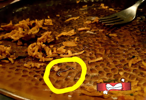 As you can see in the attached picture, along with our Biryani we were served with a free topping in the form of a STAPLER PIN and we had to remove it from the mouth. Luckily, it didn't cause much harm that night, but when we reported them to the local staff on how such a dangerous piece of metal can enter the kitchen, let alone the customer's plate, we were quite appalled by the first reactions we received and they had no clue whatsoever.
