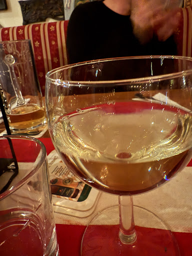 Der Laden ist gemütlich und hat 6 Sterne verdient. Der Inhaber ist ein echtes Original und hat auch 6 Sterne verdient. Das Essen war gut und bekommt 5 Sterne. Der Wein ebenfalls. 12 Sterne bekommt Sylvia, die einfach mal als Bedienung eingesprungen ist und geholfen hat.