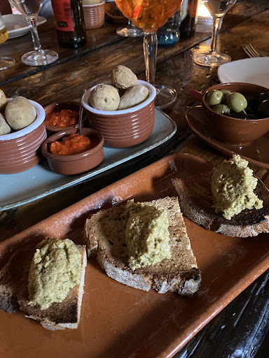 Read moreWaren gestern, also an einem Dienstag, zu Zweit da und saßen oben. Haben beim Chef Tee, Baguette mit Aioli und Pflaumen im Speckmantel bestellt. Der Tee kam zügig. Nach sehr langer Wartezeit dann die Vorspeise. Seltsames trockenes Landbrot mit Aioli und Oliven. Auf Nachfrage hin gibt es bereits seit 2 Jahren kein Baguette mehr. Warum steht es dann noch auf der Karte? Sein Fehler Oliven statt Pflaumen. Er nahm zuegig die Oliven weg ohne Entschuldigung. Dann warteten wir ca 40 min. auf die Pflaumen. Unsere zweite Bestellung Tortilla kam kalt trotz Frage ob sie warm kommt. Die Chips mit Trueffel waren gekaufte aus der Tüte. Der Chef einfach nur frech in seiner Art mir gegenüber, als ich dies mokierte. Ich war schon oft in Spanien, habe dort länger gelebt. Chips werden im Ofen frisch gemacht. Die Papas waren echt schlimm. Uralte verkochte Kartoffeln mit eklig dicker Schale. Und eine rote Soße dazu. Kein normales Mojo grün und rot. Bei allem war der Chef sehr unhöflich und unangenehm. Keinerlei Entschuldigung. Nie wieder. Der andere Kellner...