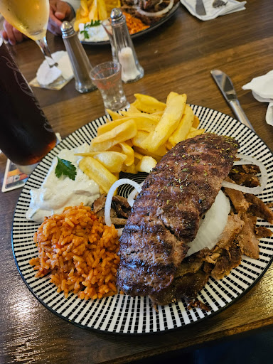 Read moreIch war mit einer Freundin da Sie hatte gegrillte Peperoni mit Knoblauch und ich Knoblauchbaguette als Vorspeise Die Peperoni schwammen in Öl, waren mehr schlecht als recht gegrillt und Knobi vermisste man schmerzlich. Mein Knoblauchbaguette war ein Billigaufbackbrötchen mit Olivenöl bestrichen und ein paar Kräuter drüber gestreut ebenfalls ohne den Hauch von Knoblauch. Dazu kam der Salat, der rein aus Krautsalat bestand incl 2cm Minipepperoni und ein paar Scheiben trocken Brot. Bestellt waren dann 2x Gyros, einmal mit und einmal ohne Reis. Der Reis umfasste gefühlt einen Esslöffel und war kaum der Rede wert. Der Zaziki war großzügig aber leider gekauft, wie die Aufbackbrötchen. Das Fleisch war unter Zwiebeln begraben und mehr als normal von Fett durchwachsen. Wir haben es Final liegen lassen weil es absolut nicht überzeugen konnte.