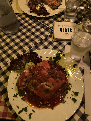 Read moreDas Personal war sehr nett und aufmerksam, der Laden selbst war wirklich gemütlich, ein toller Abend wenn man nur eine Kneipe sucht, findet man auf jeden Fall. Das Essen aber war sehr schlicht. Ich hatte ein Schweinefilet, kaum Geschmack und wirklich tot gebraten, aber mit viel Mühe wenigstens zu kauen, irgendwie. Dann noch ein Lammfilet, was aber eher ein alter Hammel war. Zu kauen war nur das Fleisch nahe des Knochens, ansonsten nicht zu kauen. Habe es wirkich versucht und habe auch sehr gute Zähne, aber das war so zäh, dass ich alles wieder ausspucken musste. Der Hammer waren allerdings die Kartoffelscheiben, frittiert. Entweder klebten 10 zusammen und waren irgendwo zwischen matschig ranzig, oder sie waren kaum zu kauen, geschweige denn mit der Gabel aufzuspießen. Bei einem Gericht waren diese vergessen worden und wurden nachgereicht, die waren frisch und so, wie man sich die vorgestellt hat. Der Salat den es vorweg gab, schmeckte wie aus einem 25 L Eimer, dazu angeblich selbstgebackenen Brot, dass schmeckte und sah aus wie Roggentoastbrot, nur ohne Geschmeckt, bzw. noch weniger und ohne Backaromen. Wir waren 10 Personen und einiges habe ich noch probiert. Das Bifteki zb schmeckte ganz ok, der Lammspieß der mir gegenüber saß schmeckte genauso wie mein Lammfilet, alter Hammel der nicht zu kauen war. Mehr wollte ich dann aber auch nicht probieren. Also für einen netten Kneipenabend mit nett zusammen Trinken wäre der Laden für mich ok, aber Essen muss ich da erstmal nicht mehr. Ich würde Ihnen einen besseren Koch wünschen und hoffen, dass das Ping was dauern zu hören war, keine...