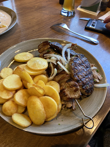Read moreWir waren das erste Mal da und auch das letzte Mal... Schon beim Reinkommen, war der Empfang sehr kühl. Das zog sich dann den Abend auch so durch. Lange Wartezeiten, von 4 bestellten Gerichten, war eins versalzen und das Hacksteak war nicht durch. Auch beim zweiten Mal, war es in der Mitte immer noch nicht ganz durch. Von Einsicht keine Spur. Hat die Kellnerin auch nicht sonderlich interessiert (die mit den schwarzen Haaren). Die anderen beiden Gerichte waren in Ordnung, aber auch kein Highlight. Lediglich die kleinere Bedienung mit den roten Haaren, war sehr bemüht und hat sich tausendmal entschuldigt bei uns. Hat dann aber unterm Strich nicht dafür gesorgt, das wir nochmal wieder kommen. Dafür gibt es dann einfach bessere Alternativen, was griechische Restaurants betrifft. Schade.