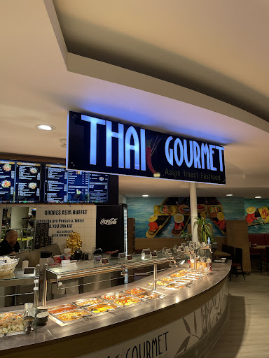 Read moreWir waren in der Stadt unterwegs und wollten noch schnell etwas essen gehen. Da wir zwei 10 Jährige dabei hatten, brauchten wir etwas was jeder mag und was man am liebsten ein Buffet mit viel Auswahl. Als wir das Thai Gourmet gesehen haben, waren wir uns schnell einig, dass es das werden soll. Wir haben auch noch einen Platz neben dem Altar bekommen. Wir alle nahmen die All you can eat Option in Anspruch und das war auch die richtige Wahl. Wir haben von allem etwas gegessen und es war alles sehr gut. Das Essen schmeckte frisch, war noch heiß und dem deutschen Gaumen perfekt angepasst von der Würze. Wer es gerne scharf mag, kann sich sicher auch noch verschiedene Gewürze holen. Für uns (drei Erwachsene, zwei Kinder) war es sehr gut. Wir mussten ein wenig auf die gebackenen Bananen und Ananas warten, aber das hat sich gelohnt. Sehr lecker! Es hat für alle was gegeben. Suppe, Reis, Nudeln, Fritiertes, Vegetarisches, Süßes und noch vieles mehr. Man bekommt einen Stempel auf den Handrücken, der nach zweimaligem ordentlichen Händewaschen, dann auch nicht mehr sichtbar ist, wenn man All you can eat wählt. Das Ambiente hätte vielleicht besser sein können, aber das liegt einmal am Ort (in einer Einkaufspassage) und vielleicht an den anderen Gästen, die sich unglaublich viel auf den Teller luden. Das Essen ist es wert, aber dennoch genossen wir die Möglichkeit, mehr als einmal ans Buffet gehen zu können. Wenn man etwas gutes Essen möchte, dann ist das Thai Gourmet...
