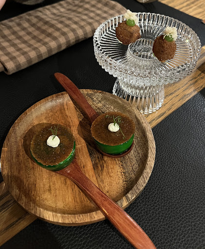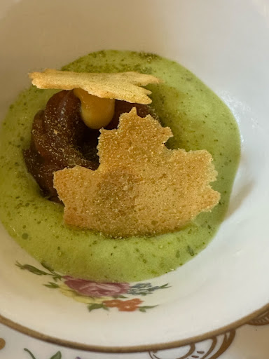 I found the decor of the restaurant uninspiring (some sort of industrial style, no tablecloths, and uncomfortable chairs). The food was not very inspiring. Some of the dishes were good (the mackerel), others disappointing (the asparagus and lobster dishes were particularly lackluster). In general, the restaurant subscribes to the style of serving a menu consisting of many dishes (five to seven, though it used to be possible to have a 4-dish menu too), each of the size of a large bite, over the course of 3.5h circa. It feels very repetitious: a tiny dish, with a couple of emulsions on the side, and a reduced broth poured at service. It takes the joy out of eating. It's a pity, because the idea of revisiting Northern German classics had merit. If they just made a 3 course menu --- starter, main, dessert), with each dish of reasonable size for human consumption, around the 70-80 Euro mark, there would be some sense. Like this it's just a sterile showing off of the same skills and ideas repeated dish after dish. Overall, I found the food boring, the decor cold and impersonal, and the overall experience not worth its high price (about 180 Euro per person...