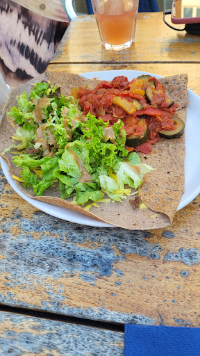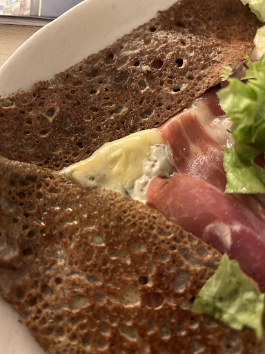 Read moreA place with a very interesting decor, which was a bit of a surprise for me, but then again, it's Hamburg, a port city. The main reason for my decision to dine here was the pancake with my favorite French cheese, morbier. They bought me as none of the pancake places I had been to before ever offered morbier in a pancake, especially not warm. The choice turned out to be a hit. I paired it with a great (house?) red wine (probably one of the best I've had in this price range). The composition with caramelized onion, sauce, mushrooms, and cheese was very good. Everything was balanced out with ham and salad, which allow for a bit of lightening up. At the entrance (exit) there's a collection of books and magazines about French cuisine, which are definitely worth checking out. Last but not the least, 18€ in 2k24 for a savory pancake with a great wine and extra water seems...