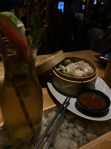 The Food was absolutely delicious! For starters, I had the Dumplings with shrimp, which were perfect. Sometimes restaurants don’t cook dumplings right, but they did it so well and it even came in the cute dumpling basket. They were really good and came with a sauce. The chopsticks we got were out of metal, which isn’t standard. Very professional. As a main course, I had the PNOM PENH PEANUTS with crispy duck. Instead of rice, I chose noodles. The server was really helpful and friendly and was nice about my extra wish. The drinks were decorated nicely and everything seemed very professional. The interior design is something I often look at in Restaurants. Because it tells a lot. In this restaurant, it was almost like you were sitting in a Vietnamese garden yourself. Absolutely stunning. The servers were professional, helpful, and very kind. The food was absolutely delicious and worth the price. I 100% recommend it. My new favorite restaurant...