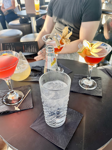 The drinks are within the range of 9 to 16 euros approximately, a bit on the expensive side but they were good in my opinion. They give you free peanuts. The food menu only includes sushi which the small one costs 35 euros. The place is nice and the waiter we had was very nice and attentive. Overall it was a nice evening and I would recommend it for a couple of drinks while enjoying the nice...