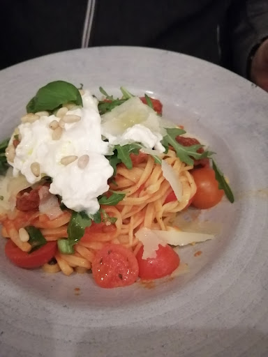 Gegen 14:00 Uhr war das Restaurant fast leer. Wir setzten uns an einen kleinen Tisch und erhielten schnell die äußerst beschränkte Tageskarte. Warum? Ist das Restaurant nicht an höherpreisigen Bestellungen interessiert? Warum wird keine Weinkarte vorgelegt. Dieses Verhalten würde in meinem Restaurant ein Gespräch mit dem Mitarbeiter zur Folge haben. Auf meinen Wunsch hin erhielten 2 Personen eine zerfledderte Speisekarte und eine Weinkarte... Die Weinauswahl war schwach. Die Speisenauswahl war ebenfalls schwach. Eine Tageskarte wurde nicht präsentiert, obwohl diese vorhanden war. Warum? Das bleibt ebenfalls das Geheimnis des Mitarbeiters aus Griechenland... So bestellten wir Tagliolini con Crema di Burrata (13,90 €) und eine Pizza Salami, 12,90 €. Als Wein bestellten wir eine Flasche Weißwein aus Sizilien: Branciforti Dei Bordonaro Cattarratto, 22,50 €.