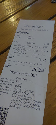 Good food and service. Very nice surrounding. Two negatives: red wine I got was not chilled. It was a hot days with temperature over 30 degrees and the red wine had same temperature. If this place advertises for wines and you pay 6 – 8 EUR for a glass, you expect it is served in correct temperatures for red wine which is below 20, not 30+ Foreigners cannot pay with card in this place. Only German EC cards (issued only in Germany) are accepted which is not very XXI century and is...