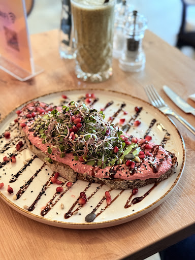 I had the toast with beetroot hummus, avocado and pomegranate seeds. The avocado was a bit like a guacamole so a bit too much soft-on-soft for my liking. Lacked a bite. Tasty nevertheless.