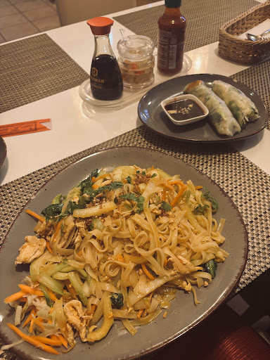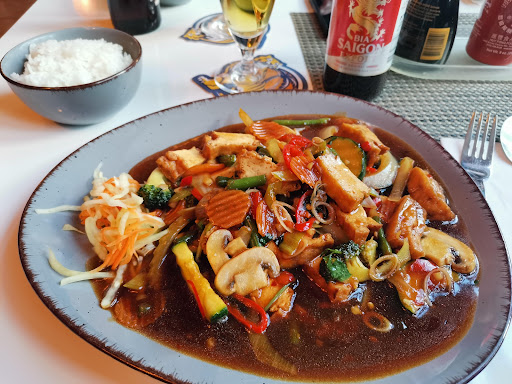 Read moreIch habe von bun dau Tofu anders erwartet und war schon enttäuscht. Ich hatte nicht mit gummiartige Tofu erwartet, dann darf es nicht auf der Karte gebratene Tofu stehen, sonst versteht man so als was der vietnamesische Koch so kocht. Deswegen Verwirrung, was ich gegessen habe ist gummiartige Tofu erst kurz gebraten worden dann geschnitten. Sie sollen lieber Naturtofu geschnitten dann gebraten nehmen oder auf der Speisekarte darf nicht gebratene Tofu stehen, eher anders formulieren. Und Gebratene Reis mit Gemüse sieht lecker aus. Meine Mädels haben nicht viel davon gegessen, als ich und mein Mann haben das noch aufgegessen. Er bekam Bauchschmerzen und ich auch erst später genau die Stelle und zwar mit Krampf daher vermuten wir das, vermutlich vom Ei. Denn er hat zuvor Suppe gegessen und findet es fad, da ihm von woanders die Suppe besser geschmeckt hatte, aber nicht mehr bezahlt wie diese. Die Ambiente ist auch zu einfach, als denkt man, wir sind im Bistro statt Restaurant. Tut mir leid die Sterne aber Magenkrämpfe sind...