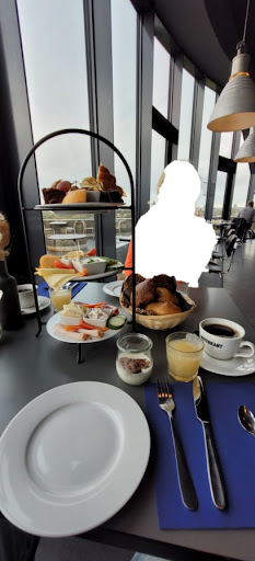 Read moreHeute war ich zusammen mit Freunden zum Frühstück im vju im Energiebunker. Wir hatten uns sehr auf das angepriesene regionale Frühstück in nettem Ambiente gefreut. Positiv hervorzuheben ist der tolle Ausblick im vju mit einem tollen Blick über Hamburg. Das Frühstück konnte meine Freunde und mich leider nicht überzeugen. Wir fanden das Preis-Leistungsverhältnis leider überaus schlecht. Für 24,50€ pro Person wurde ein reichhaltiges Frühstück am Tisch angepriesen. Leider war das Frühstück alles Andere als reichhaltig. Für drei Personen wurde uns eine Etagere mit Aufschnitt (eine vegetarische Optionen wurde uns proaktiv nicht angeboten), Käse, Aufstrichen und einigen kleinen Stücken Kuchen serviert. Dazu gab es einen Brotkorb mit 3 Brötchen, 3 Scheiben Brot und einigen Stücken Franzbrötchen, sowie ein sehr kleiner Joghurt mit Müsli. Nachbestellungen nur gegen Aufpreis. Das Frühstück an sich hat gut geschmeckt, auch wenn der Aufschnitt (den niemand von uns gegessen hat) leider total vertrocknet war. Den Preis haben wir alles in allem leider als sehr unangemessen empfunden und waren über das Angebot mehr als enttäuscht. Meine Empfehlung ist das Angebot und den dazugehörigen Preis einmal deutlich zu überdenken. Für knapp 25€ pro Person bekommt man in Hamburg deutlich bessere Frühstücksangebote....