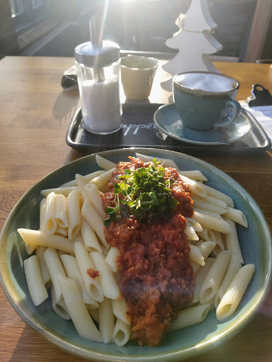 Sorry Wild&Veggie, das war gar nichts. Die Grünkernbolognese war so widerlich, dass ich keinen Bissen runter bekommen habe. Extreme Säure, so dass es auf der Zunge gebritzelt hat, weitere Gewürze waren nicht zu identifizieren. War die Sauce gekippt? Oder war sie alle und es wurde Tomatenmark als Sauce gereicht? Das Feedback aus der Küche - nö, gehört so. Es bleibt ein Geheimnis was der Koch uns da kredenzen wollte. Das waren 10 Euro für nichts. Schade, ich war in Zeiten von Homeoffice gerne immer wieder euer...
