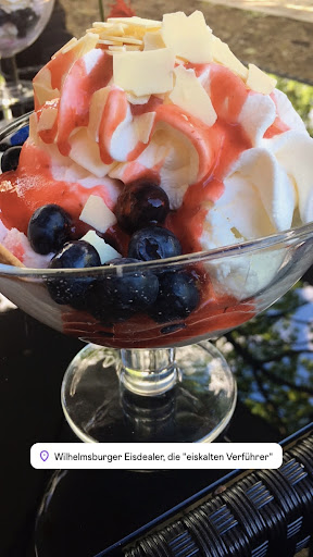 Read moreWenn man hier so manche Bewertung liest erkennt man sofort: ok, die haben es nicht verstanden.... Warum bewerte ich bei einem Eisdealer das Ambiente des Ladens, wenn ich dort wegen des Eis hingehe/fahre??? Also, hier mal eine Bewertung wie man sie richtig formuliert! Wir waren mit dem Fahrrad in Hamburg unterwegs und wollten nicht an den typischen Touri-Abzock-Plätzen ein LECKERES Eis essen. Mit dem Radl durch den Elbtunnel nach Wilhelmsburg. Ok, kein wirklich ansehnlicher Stadtteil.... Per Google gesucht: bestes Eis Hamburgs. Und schon tauchte der "Wilhelmsburger Eisdealer" auf. Bewertungen gelesen und gedacht: da fahren wir hin, wir wollen kein aus der Pulvertüte angerührten Chemiekram.... Auf dem Weg dort hin dachten wir uns: das kann doch nicht sein, hier soll es das beste Eis Hamburgs geben? Wilhelmsburg ist echt....unschön ;-) Angekommen, waren wir zuerst etwas erstaunt ob des schlichten Eindrucks, den der Laden macht. Aber dann lasen wir die ganzen Eissorten: Grießpudding mit Feige, Sauerrahm mit Heidelbeer, es gab sogar Lakritzeis (Sallos?). Wir wählten den Erdbeer- und den Blaubeer-Cup, jeweils mit Sahne. Leute, was soll ich sagen: alleine bei der Auswahl der Eissorten war ich schon ratlos.... 3 Kugeln je Cup, man hätte am liebsten 10 Kugeln genommen. Letztendlich haben wir uns für Vanille (mit ECHTER Vanille), Erdbeer (mit mehr als 40% echten Erdbeeren!), Sauerrahm mit Heidelbeere und Grießpudding mit Feige entschieden. Gekrönt mit Sahne, frischen Erdbeeren bzw. Blaubeeren und leckerer Erdbeer- bzw. Blaubeersauce. Draußen vor dem Laden ein Plätzchen ergattert, dazu mit dem örtlichen Bezirkspolizisten, der sich JEDEN Mittag dort 1 Kugel Eis holt, ein sehr nettes Pläuschchen gehalten. Und das Eis ist PHÄNOMENAL! Wir kommen sehr viel herum, reisen viel und sind keine Kostverächter. Und wir haben schon viele, sehr viele Eisdielen in D ausprobiert. Aber der Eisdealer ist für uns bisher einer der TOP-3-Eismacher! Ich kann den Eisdealer wirklich empfehlen, selten bekommt man so gutes, hausgemachtes Eis. Und die Eissorten sind alles andere als gewöhnlich. Next time Hamburg: Stop...
