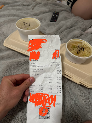 Read moreAm 26.9.2021, 18:53 Uhr bestellt über restablo.de. Lieferzeit angeblich 60 Minuten. Eintreffen des Essen um 20:15 Uhr. Zack erster Stern weg. Der Lieferfahrer: Kein Wort deutsch. Hat versucht sich in schlechtem englisch zu verständigen. Peng, der nächste Stern weg. Bestellt war: 2x Mini Frühlingsrolle 1x Sauer Scharf Suppe 1xGebackene Ente mit 8 Gemüse 1x Bratnudeln mit Hühnerfleisch 1x Gebackenes Hühnerfleisch Erdnusssauce 1x Wan Tan gebacken Gesamtsumme 42.-€ Mini Frühlingsrollen O.K. Kann man nicht viel falsch machen. Kommen fertig vom Großhändler. Sauer Scharf Suppe: Kam nicht. Wurde durch eine Gemüsesuppe ersetzt die völlig frei von Gewürzen war. Klares Wasser mit Brokkoli. Wirklich komplett ohne Geschmack. Als wenn man warmes Wasser aus dem Hahn löffelt. Weggekippt. Ente: Die Ränder der Ente totgebacken und steinhart. Der Rest O.K. Gebratene Nudeln waren O.K: sagt das Kind. Muss ich glauben. Hühnerfleisch in Erdnusssauce: Eher Erdnussbrühe. Dünne Plürre weit von "Sauce" entfernt. Hühnerfleisch soweit O.K. Wan Tan gebacken: Nicht dabei. Fehlten komplett. Und der nächste Stern weg. Also angerufen. Ob ich die Wan Tan jetzt unbedingt brauchen würde, war die Frage des Herren am Telefon. Und das er jetzt keine Zeit hätte und mich später (?? Nachts ??) zurückrufen wolle. Auf den Anruf warte ich heute 1.10.2021 immer noch. Der 4. Stern weg.