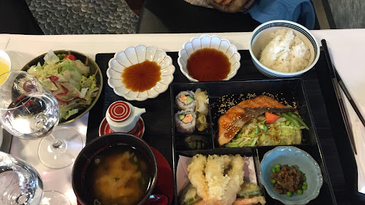 We ordered the lunch menu, bento and sushi maki roll set. Service was nice but very slow. Food took about 20 minutes or more to come.. bento was all very nice but it's really not soooo much for this price. I guess it's like elegant eating not making you fell full. Miso soup was yummy not too salty but also not really special. My sushi maki roll set was ok, one roll with cucumber, the other with avocado and one with crab meat stick. I was expecting some fish at least (salmon maybe) for this price.. well overall it's tasty, simple but way too expensive. At the end we pay for lunch special between 30-40 euro per person. I was also kind of surprise Japanese green tea costs 7,8€ but it didn't really taste so different then normal green tea in other Asian restaurant.