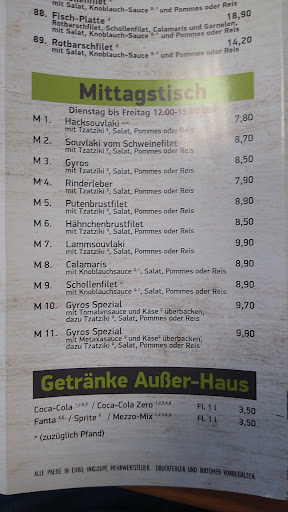 Read moreWir waren 2 mal dort essen, eigentlich vor allem deshalb, weil wir uns auf die Kundenrezensionen verlassen haben und weil der laden auch tatsächlich gut und sehr gut besucht wird, wenn wir an ihm vorbeigehen und die Menschenmassen dort sehen. Das erste Mal war schon schlecht. Naja, kann ja mal passieren, dachten wir uns, und gaben nochmal eine Chance diesem Lokal. Das zweite Mal war noch schlimmer: gegessen haben wir Gyros in Metaxa Sauce: danach der Wunsch, dass jmd schnell einem den Magen auspumpt... Was stimmt: die Preise sind niedrig und die Portionen riesig. Das wars dann auch. Das Essen ist extrem fettig, übersalzen, schmeckt ganz und gar nicht. Wer entweder gern und häufig zu Hause kocht oder Lokale besucht, die auf Qualität statt Quantität Wert legen, wird schnell merken, was hier serviert wird: sorry, aber es handelt sich um qualitativ sehr schlechtes Essen, eigentlich ist das mehr Fraß als Essen... Weil anscheinend jedoch viele Menschen sich den Magen mit Hauptsache billigem Essen vollstopfen, was an den Gästen auch nicht zu übersehen ist, gaukeln die positiven Rezensionen einem etwas vor, was der Laden leider nicht kann: leckere und qualitativ gute Gerichte anzubieten. Lieber gebe ich mein Geld für eine teurere Kleinigkeit woanders aus, als hier für einen Berg an schlechtem...