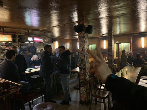 We were at this bar two times during a Hamburg weekend. Both experiences were great. The first time we went in and had two shots of jägermeister. The vibe was happy semi chaotic. An old man was reading a paper in a corner. There was broken glass and beer all over the floor. A 30 something woman was singing loudly and dancing around the place. A group of rowdy men drank beer in a booth and the jukebox was delivering classical German tunes.