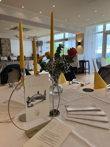 Read moreMy husband and I were visiting from the U.S. and dined here for our anniversary. The view is breathtaking, and the food was absolutely delicious! My husband had the Ribeye and I had salmon. I chose grilled veggies and a baked potato for my sides (a la carte), and my husband had the Steak Frites (fries.) Everything was flavorful, fresh, and cooked to perfection. The cappuccino was even the best cappuccino we'd ever tasted. So delicious in fact, we asked our server what brand of beans they use. He was very gracious and accommodating, and brought out the bag for us to photograph so we could pick some up. (No luck. They're from Italy and don't ship to the U.S.) We had such a great experience that we returned the next day to purchase a gift certificate for our daughter and husband who live nearby. (However, they are closed Monday and Tuesday and there is no one there at all on these days so unfortunately, we weren't able to purchase the certificate.) When we return to Germany, we will most certainly return to...