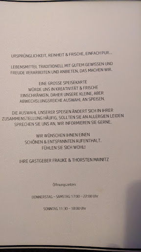 Read moreWir haben 1,5 Std auf das Essen gewartet. Essen war versalzen, vom Besitzer keine Reaktion darauf. Das Stuhl Mobiliar ist alt, und man beschädigt sich seine Strümpfe was sehr ärgerlich und auch teuer ist. Der Besitzer ist unfreundlich , ich sollte einen Beleg / Rechnung einreichen, was ich tat. Er wollte den Schaden über seinee Versicherung regeln. Trotz Mail und Rechnungsbeleg bis heute keine Reaktion vom Besitzer. Den Schaden hat er bis heute nicht erstattet obwohl wir mit acht Leuten dort Essen waren. Und er zugesagt hatte dieses zu tun. Das soll Kundenservice...
