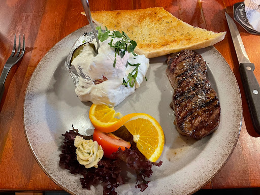 Read moreInsgesamt eine sehr durchwachsene Erfahrung. Schon bei der Bestellung wurde die Nachfrage nach Empfehlungen vom Kellner nur belächelt, eine vernünftige Aussage gab es nicht. Von 6 bestellten Steaks, war nur eines wie gewünscht gebraten. Der Rest war deutlich blutig, statt medium. Die Ofenkartoffel war okay, schade nur, dass der Großteil der Sauce über die Alufolie gekippt wurde und damit quasi unnutzbar wurde. Ein Filet ging zurück in die Küche, weil es komplett roh war, kam dann aufgeschnitten zurück, das war es dann mit dem Filet. Insgesamt war die Fleischqualität eher durchschnittlich, Tendenz abwärts. Die geäußerte Kritik wurde dann wegdiskutiert. Ernst genommen wurde davon nichts. Es sei auch noch zu erwähnen, dass wir unser Essen erst nach sehr langem Warten bekommen haben. Andere Kunden, die deutlich später als wir kamen, wurden deutlich...