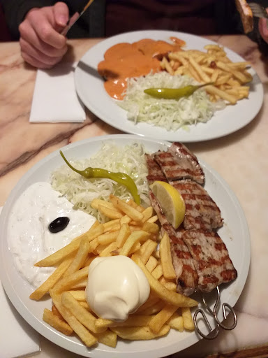 Mein Lieblingsgrieche, wenn es mal schnell und günstig sein soll! Eigentlich eher ein Imbiss, in welchem man aber auch an mehreren Tischen gemütlich sitzen kann. Von den Inhabern wurde aus der Räumlichkeit das maximal Mögliche heraus geholt und man hat nicht das Gefühl, in einem Imbiss zu sitzen, wenn man nicht gerade auf die Theke und die wartenden Kunden schaut. Der Laden ist immer gut besucht. Seit einer gefühlten Ewigkeit die gleichen Inhaber und die gleiche Qualität der Speisen. Egal ob Gyros, Souvlaki, Pommes, oder Salat (der Reis könnte meiner Meinung nach besser sein). Alles ist äußerst schmackhaft, frisch und von hoher Qualität. Und dazu noch vergleichsweise günstig. Ein Besuch lohnt sich allemal. Ihr werdet sicherlich wiederkommen...! Altbier und Pils frisch vom Fass. Zum Abschluss gibt es eine Runde Ouzo aufs Haus, sogar für Abholer im Imbiss. Das kenne ich nirgendwo anders. Parken direkt vorm Haus eher schwierig. Also ein paar Meter Fußweg akzeptieren. Oder noch besser: Steigt aufs Rad und...