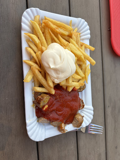 Read moreIch war mit meinen Mädels im Krankenhaus in der Aufnahme. Nach 3 Stunden in der Aufnahme hatten wir so Hunger, dass ich draußen mal geschaut habe was es so in der Nähe gibt. Ich hatte nur drei Pommes mit Mayo bestellt. Beim bezahlen stockte ich stutzig als mir die Dame die Hand mit dem eindeutig fettigen Handschuh hinhielt. Als ich so eine halbe Sekunde die Situation am einschätzen war, zog die Gute mir schon den Zwanziger ruppig aus der Hand. Das Rückgeld bekam ich auch aus eben diesem Handschuh. Wäre ich nicht in der Situation wie ich war (kurz vor Ladenschluss und extrem hungrig) hätte ich mein Geld wieder haben wollen bei dem Umgang mit Hygiene. Als ich da wartete und das Geschehen beobachtete, kam ein weiterer Gast der eine Currywurst bestellte. Der anderen Dame ist beim händischen Schneiden der Wurst diese auf den Boden gefallen. Man sah ihr förmlich an, dass sie überlegte, was sie jetzt genau macht! Die Damen fingen an zu flüstern, bestimmt zwanzig Sekunden. Ich als Kunde frage mich was es da zu klären gibt. Sie hob die Wurst dann auf, aber nicht über die Ladentheke. Ich kann mir sehr gut vorstellen, dass die Wurst, wenn der Laden wieder leer war den Weg auf den Grill gewunden hatte. Den Laden würde ich nur im Verhungerungsfall empfehlen. Bei Pommes kann man gar nicht soviel falsch machen. Alles andere würde ich davon auf gar keinen Fall...