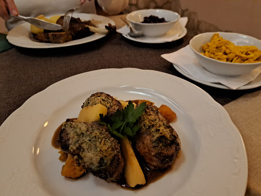Semi Überzeugt... spontan vorbei kommen an einem Wochentag überfordert die Bedienung. Es waren nur ein paar Tische besetzt, wir warteten am Tresen und fragten nach einen Tisch. Den Bekamen wir auch, leider mitten im Zug und jeder läuft vorbei wenn er auf Toilette muss.... Als wir den Tisch hatten mussten wir geschlagene 10 min auf die Karte warten, und sollten dann gleich Getränke bestellen. Als wir erst schauen wollten und dann aussucheten, kam ein genervter Blick der Bedienung... dann ging alles recht fix vom Essen bestellen bis hin zum Essen. Und jetzt kommt das was mich an meisten enttäuscht hat, ich hatte mir Wildschwein Rücken ausgesucht. Das Fleisch war kalt und dadurch Mega zäh Als ich dies bemängelte, kam NIX. Halt doch, ein Schulter zucken. Da könne man nichts machen, das wäre eben Wild.... Ich selbst bin kein Profi Koch, muss aber sagen Wildschwein Rücken habe ich auch schon gemacht und ja man kann da was machen.