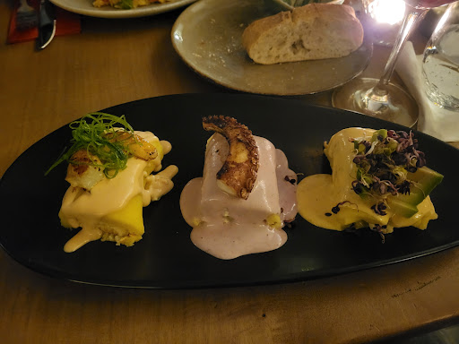Das Essen war in Ordnung. Preis-Leistung würde ich eher Mittelmaß sagen. Wir mussten alle Speisen nachträglich salzen. Die Portionsgröße war ok, wie man den Bildern entnehmen waren Garnele oder Octopus eher eine Garnitur, als wirklich eine Speise (auch wennn diese lecker waren). Daher hier 1 Stern Abzug. Die Cocktails warem sehr lecker!